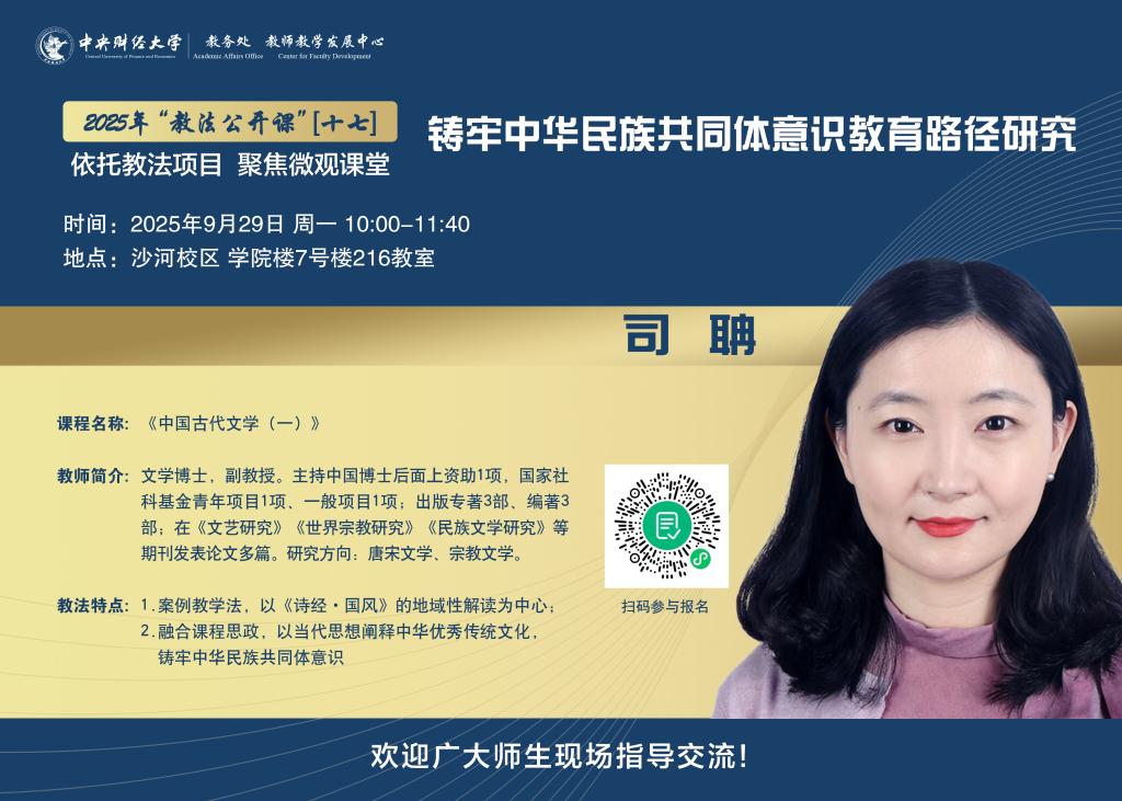 “教法公开课”2025年第17期|文化与传媒学院 司聃《中国古代文学(一)》