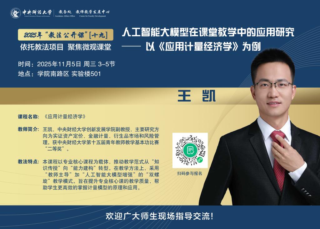 “教法公开课”2025年第19期|创新发展学院 王凯《应用计量经济学》