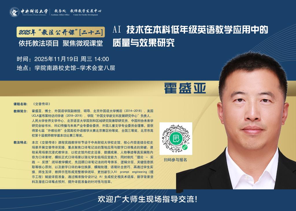 “教法公开课”2025年第22期|外国语学院 霍盛亚《交替传译》