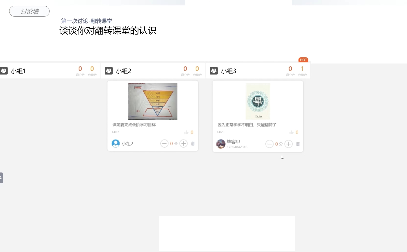 授课端触控大屏集显示、板书、无线投屏、考勤、随机分组、多屏互动、远程互动等功能于一体,将传统讲授模式与多媒体技术相结合,强调分组讨论和成果展示,教师在大屏端授课,学生分组展开组内讨论和组间讨论,最终可通过投屏实现小组成果展示。