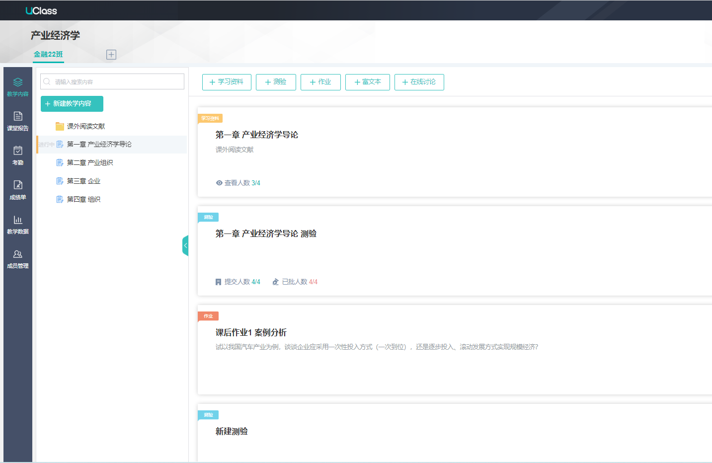 教师可在课前直接在“网页备课端”维护课程信息、教学内容、学生信息,提前设置整个学期的任务和时间节点,同时增加本课程阅读清单、章节作业和章节测验等。学生在学期初可通过移动端随时查看学习任务,了解长期教学安排,做好自主学习规划,按时完成各项作业及测试。