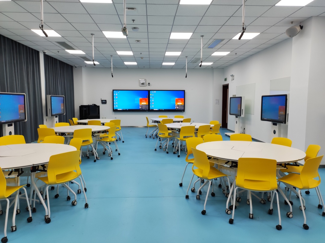为打造新形态的智慧教学环境,助力课堂结构变革,智慧校园建设中心秉承“简单易用、场景融合”的理念建设了一批智慧教室,打造多屏研讨空间和沉浸式教学环境,支撑互动性教学、个性化教学和小班化教学。