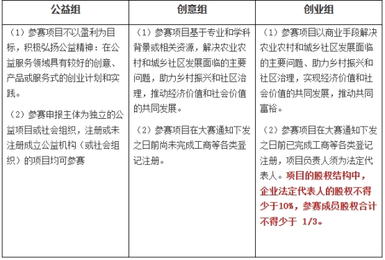 参加“青年红色筑梦之旅”赛道的项目应符合大赛参赛项目要求,同时在推进农业农村、城乡社区经济社会发展等方面有创新性、实效性和可持续性。参加“青年红色筑梦之旅”赛道的项目,须为参加“青年红色筑梦之旅”活动的项目。否则一经发现,取消参赛资格。根据项目性质和特点,分为公益组、创意组、创业组。具体要求如下: