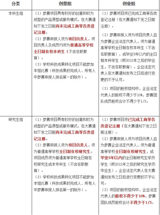 1.参赛团队负责人(即申报人)须为中央财经大学在校本科生、硕士研究生、博士研究生(均不含在职学生)或毕业5年内全日制学生(即2021年之后的毕业生,不含在职学生);成员可跨校组队,但均须为普通高等学校在校学生(不含在职学生)。